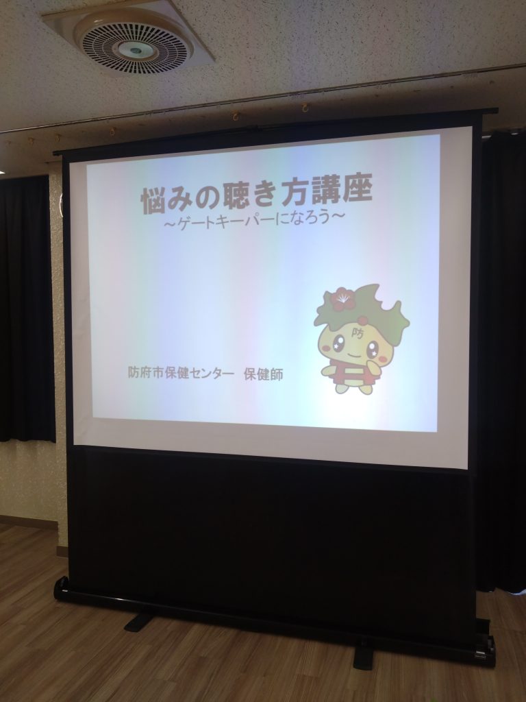 私は通信制の大学に通いながら社員をさせて頂いていますが、その傍ら様々な催しに参加しています。 そこで今日は、最近参加した2つについてご紹介しようと思います。 1つ目は、10月17日に防府市保険センターでありました「悩みの聴き方講座」です。 こちらでは保健師さんが、誰でもなれる「ゲートキーパー」という役割についてお話しくださいました。 近年の自殺の傾向についてのお話から始まり、特別な資格や能力が無くても、身近な人がその役割を負えるゲートキーパー(門番)についてのお話で、話の聴き方(傾聴)、返答をどのようにするかなど、実践も交えてお話が聞けたので、とても勉強になりました。 近年はネットの普及もあり、自殺・自傷に関するトピックや、人の悩みを見聞きする機会が増えました。私自身も高校は通信制で、色んな悩みを持つ人が周りにいました。 それは今も変わりません。 周りにいる悩みのある人、誰にも話せず苦しんでいる人、そういった人の助けに自分が少しでもなれればと思っています。 是非皆さんも「ゲートキーパー」調べてみて下さい。
